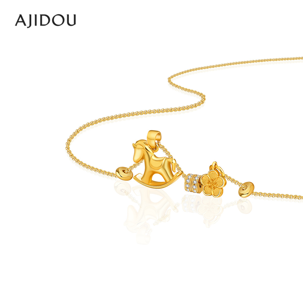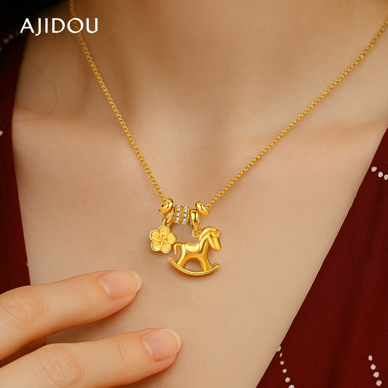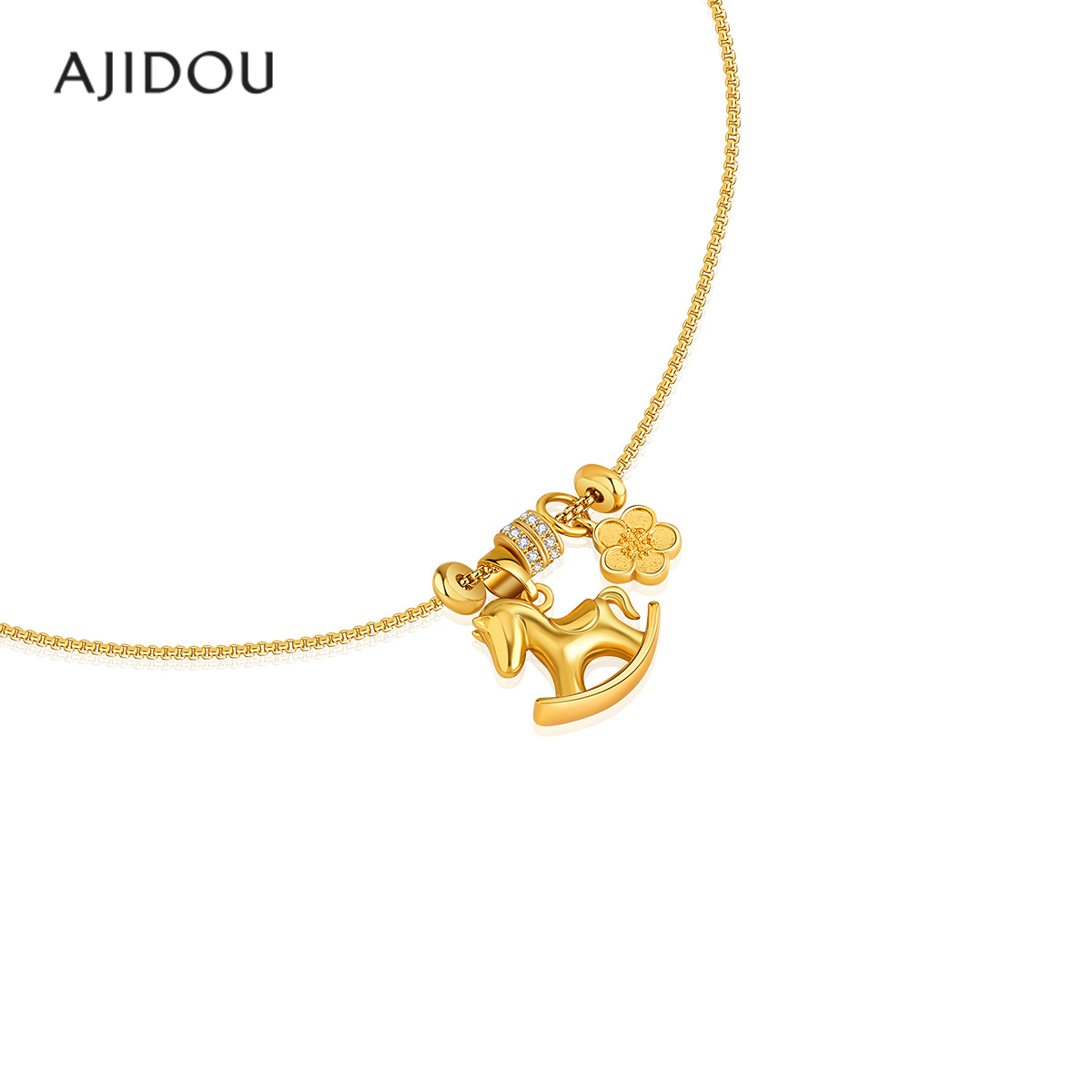 阿吉豆AJIDOU项链女款时尚金色马吊坠花朵锁骨链首饰品短精链颈联