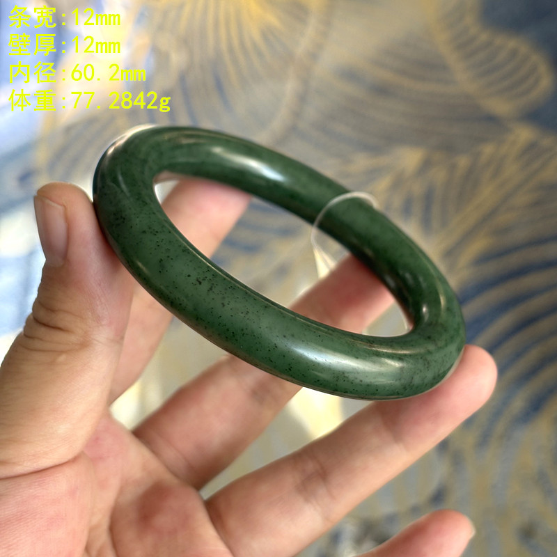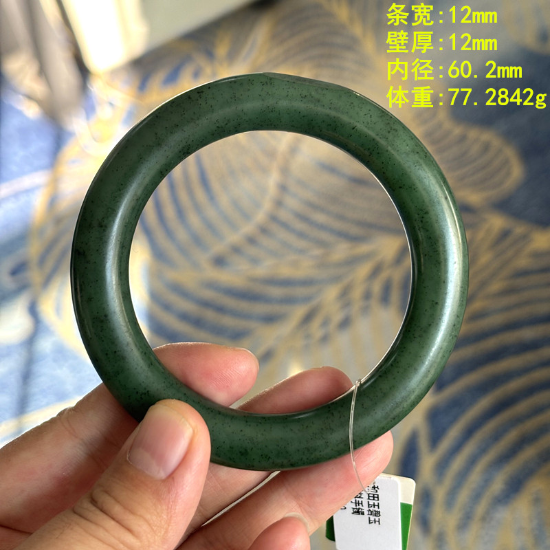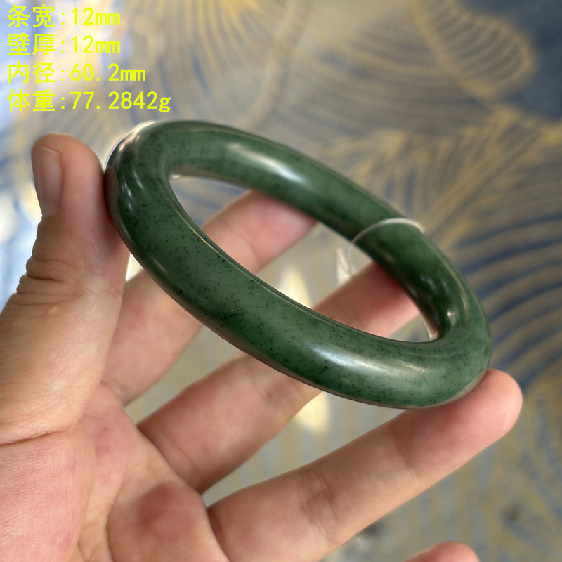 N60.2碧玉籽料手镯美人镯 有原皮 朕® 新疆和田玉