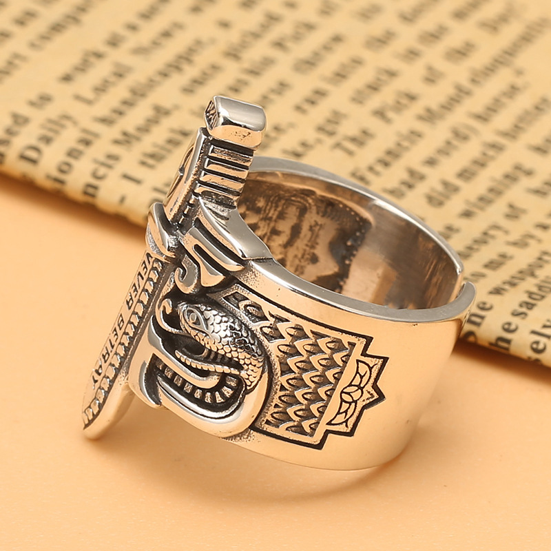 新品个性大气宝剑匕首戒指男士复古食指戒子酷宽面活口
