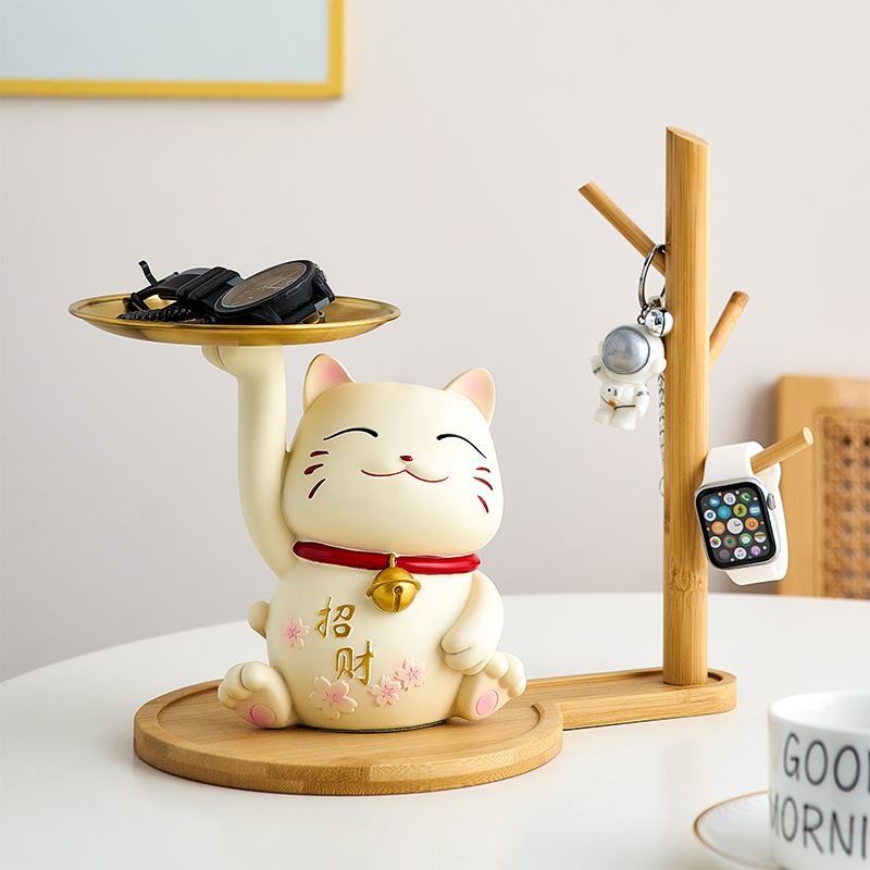 招财猫玄关钥匙收纳摆件托盘进门口入户鞋柜上的置物架客厅装饰品