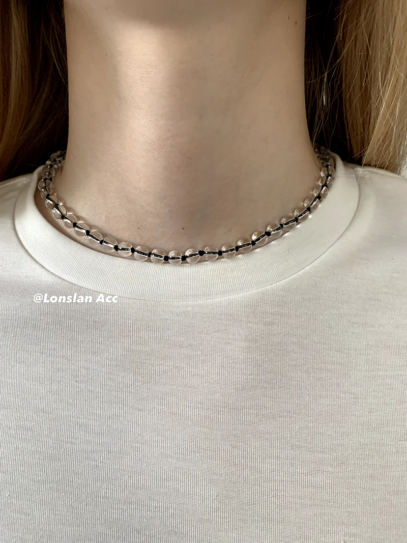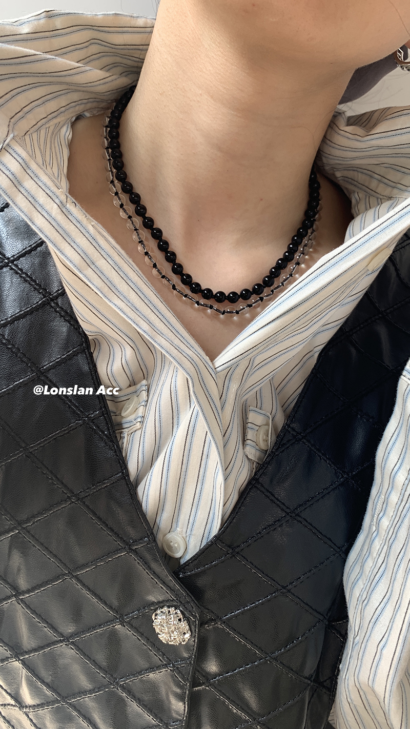 LONSLAN ACC 法式高级感珍珠项链玛瑙水晶手工串珠锁骨链项链