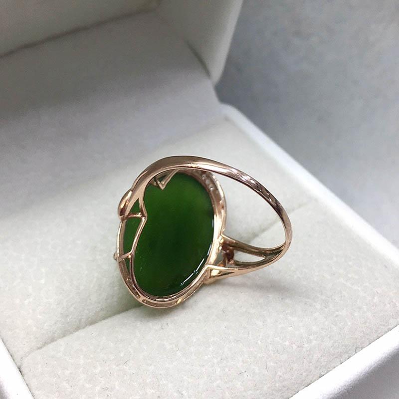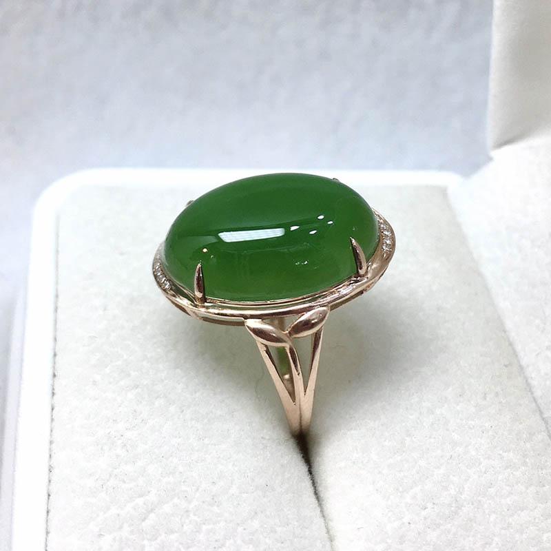 新春开门红天然和田玉戒指a时尚菠菜绿碧玉蛋面镶18k金指环送老婆