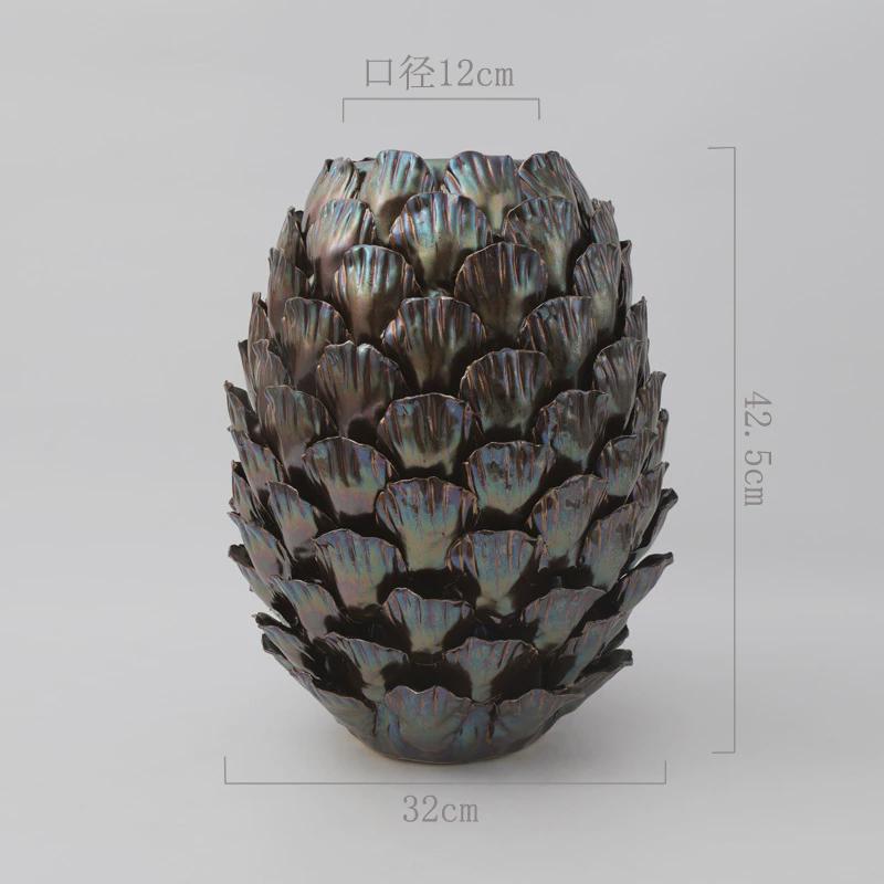 假山摆件直供新中式轻奢陶瓷窑变釉金属色花瓶厂家酒店会所样板间