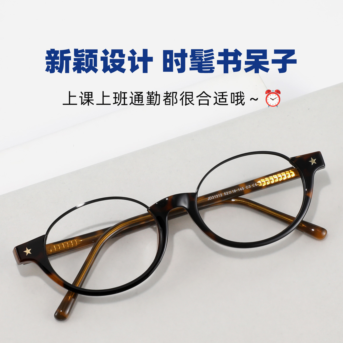 复古日系下半框眼镜框椭圆小框玳瑁书呆子眼镜可配近视度数镜框女