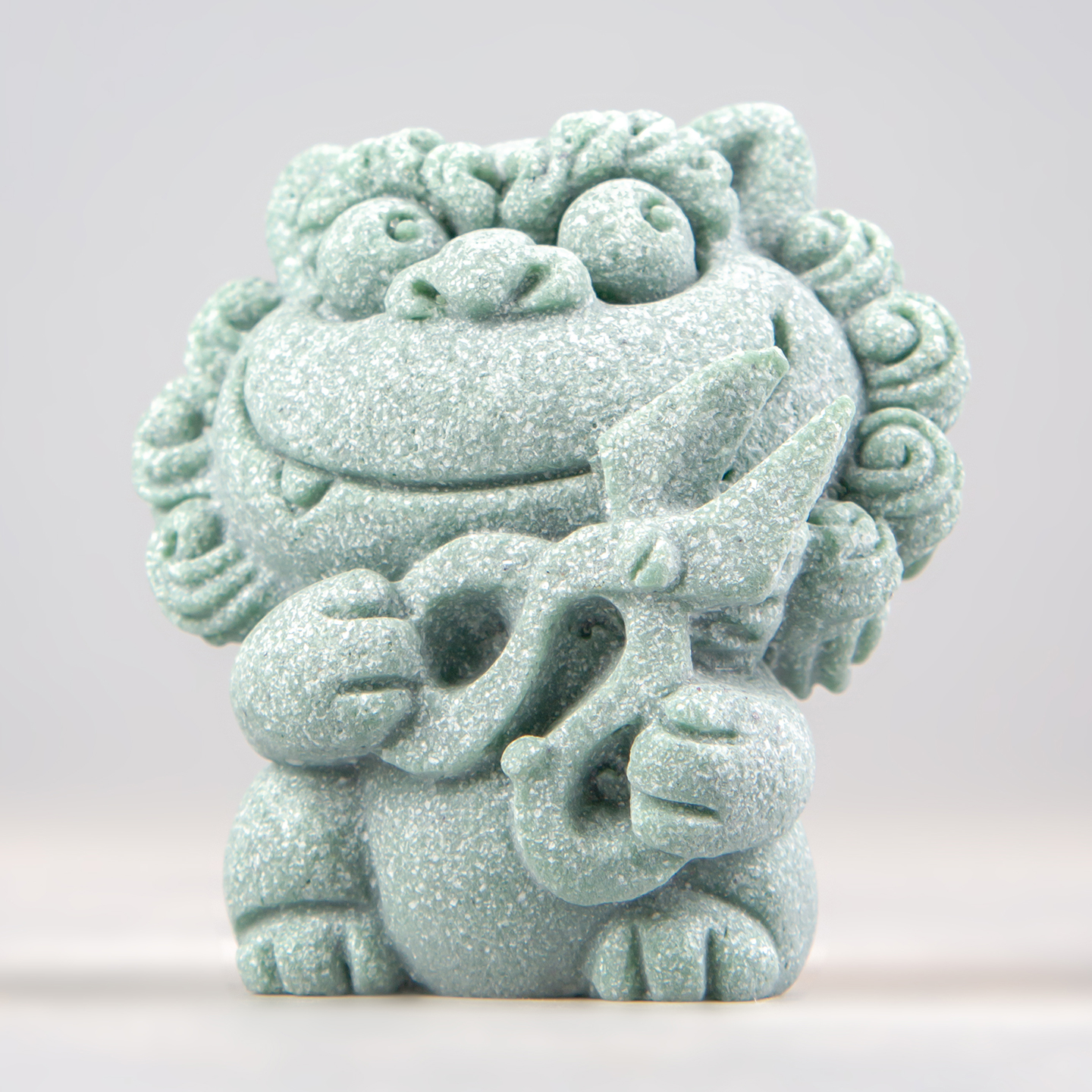 国潮青砂石可爱小狮子茶宠摆件创意金剪刀风狮爷茶桌装饰工艺品