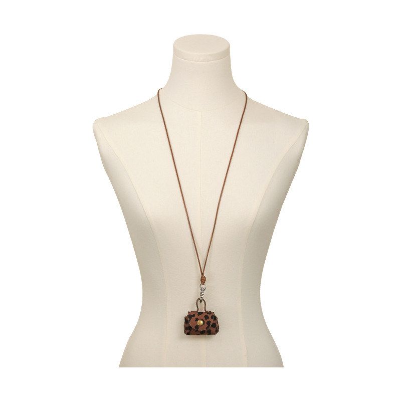 豹纹皮质小巧零钱包项链女挂件皮绳长款毛衣链钥匙收纳包包配饰