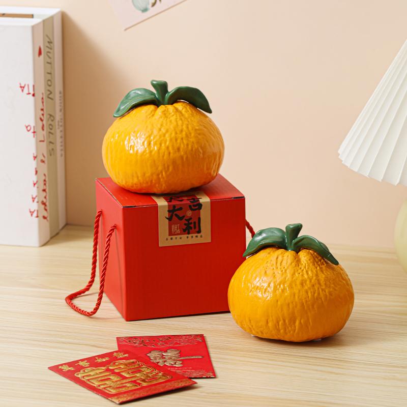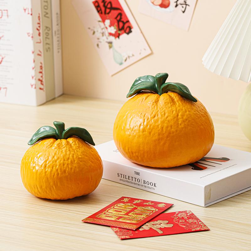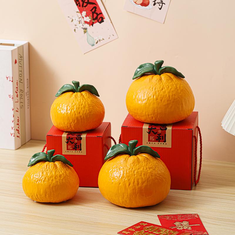 大吉大利陶瓷桔子仿真水果橘子丑橘金桔办公桌摆件客厅桌面装饰品