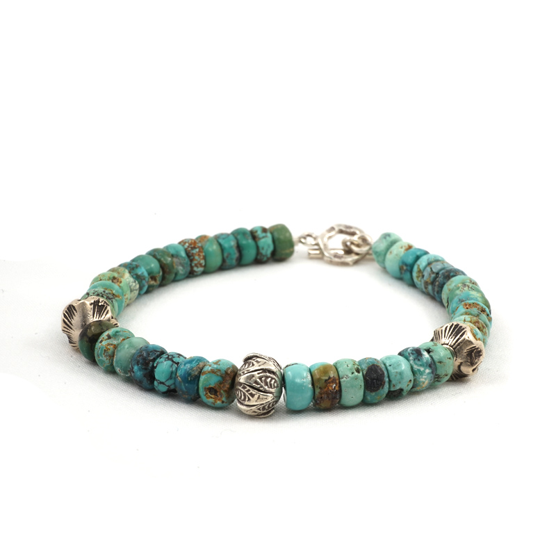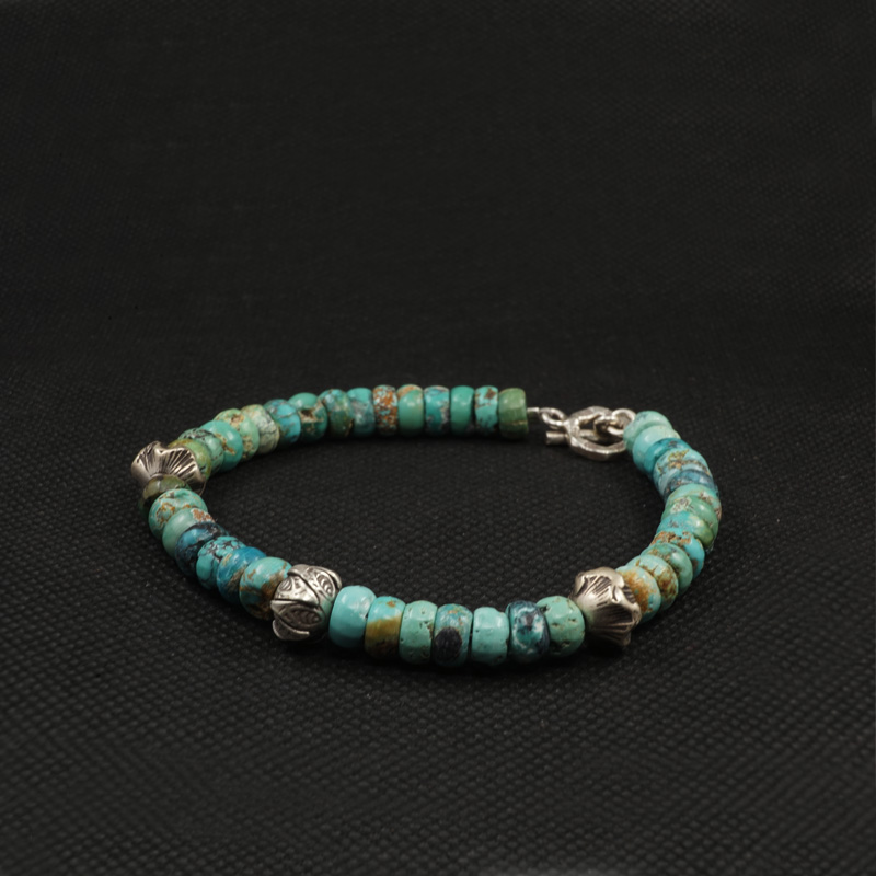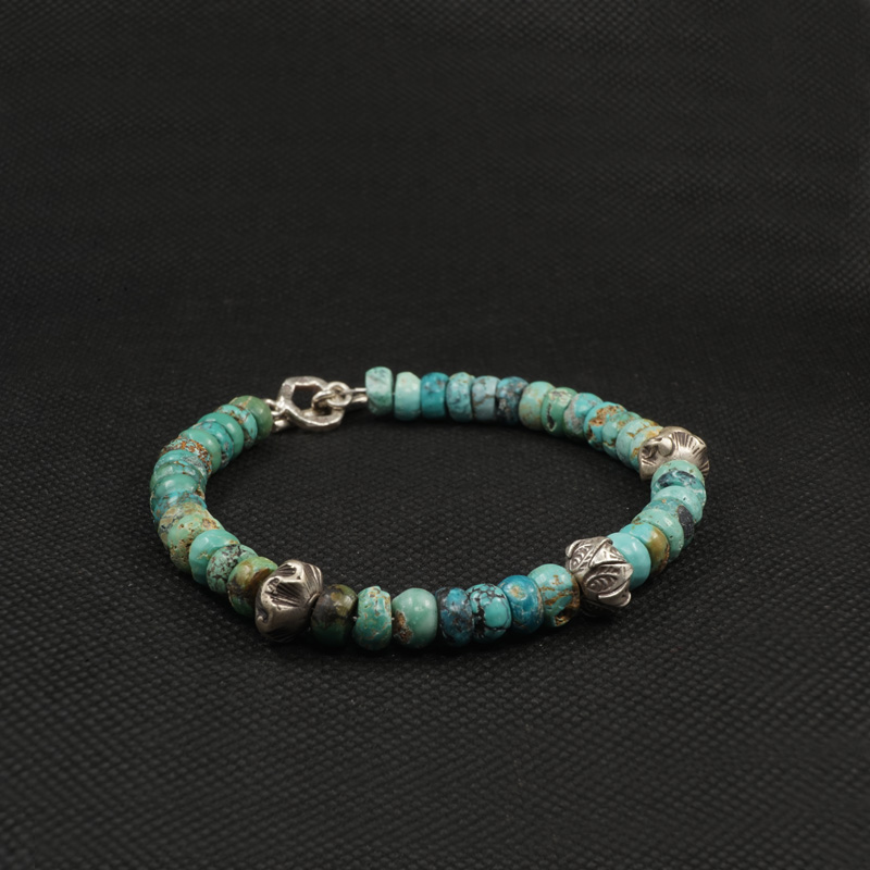 Pohier印第安古法纯银天然原矿绿松石男女手链情侣小众设计