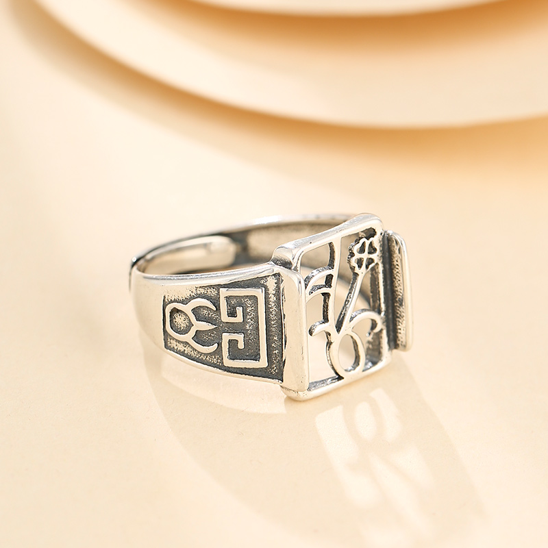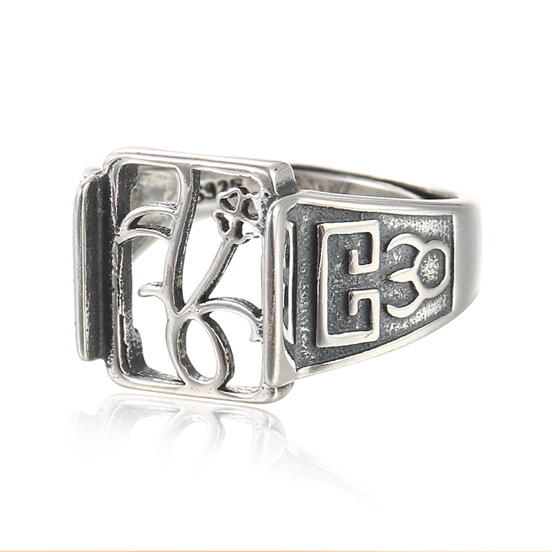 S925纯银戒指空托复古男女方形diy蜜蜡松石玉石镶嵌戒托空托10*13