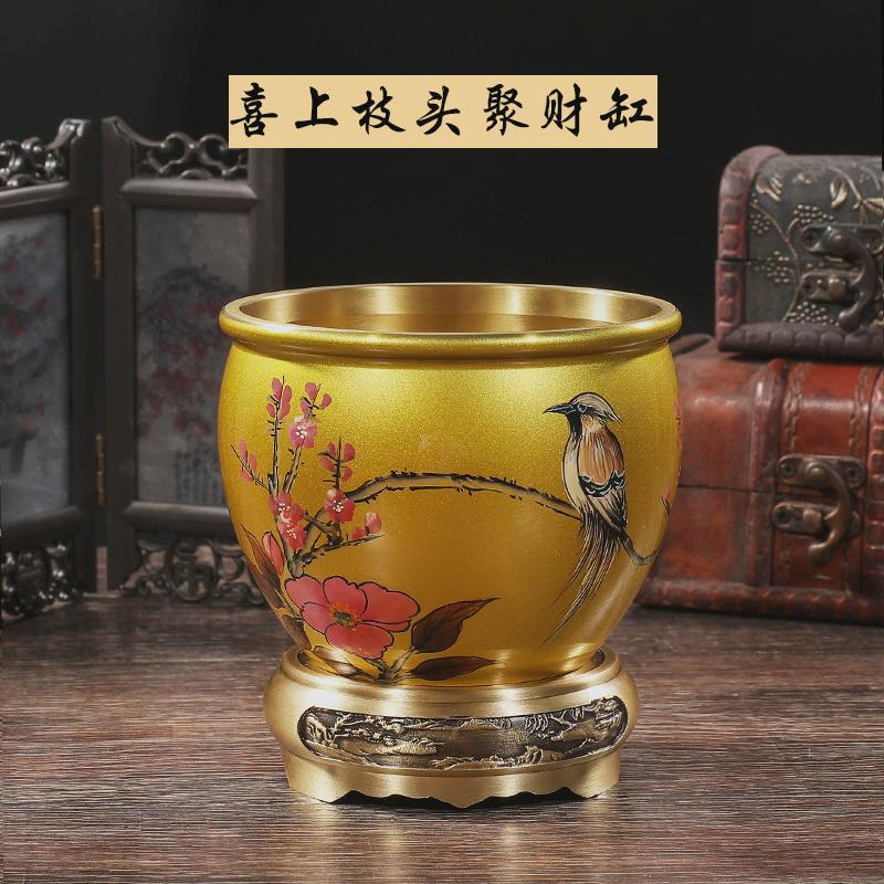 纯黄铜百福缸米缸彩绘百福聚宝盆聚财招财办公室桌面批发饰品摆件