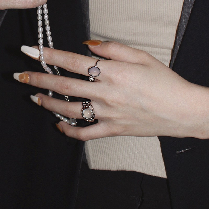 饰尚e族韩版气质玛瑙戒指女复古时尚花朵开口指环镂空嘻哈食指戒