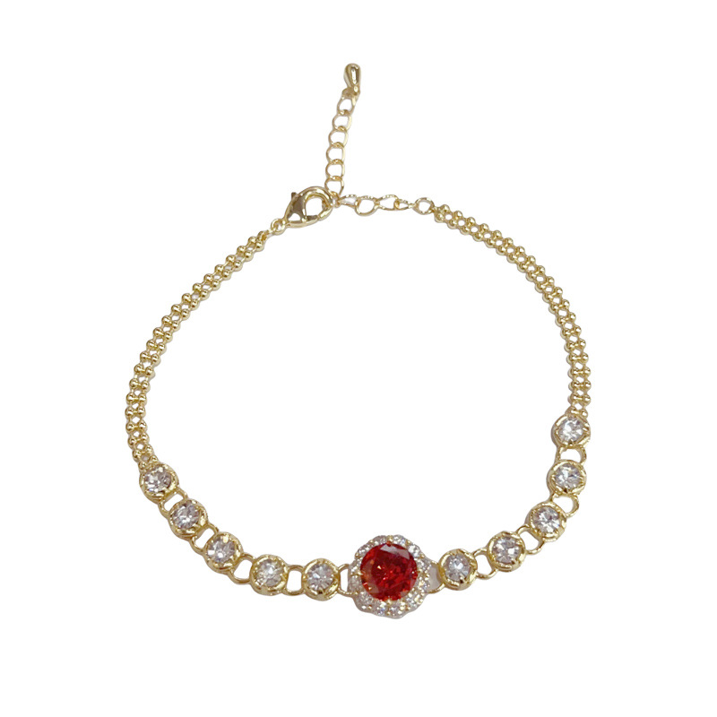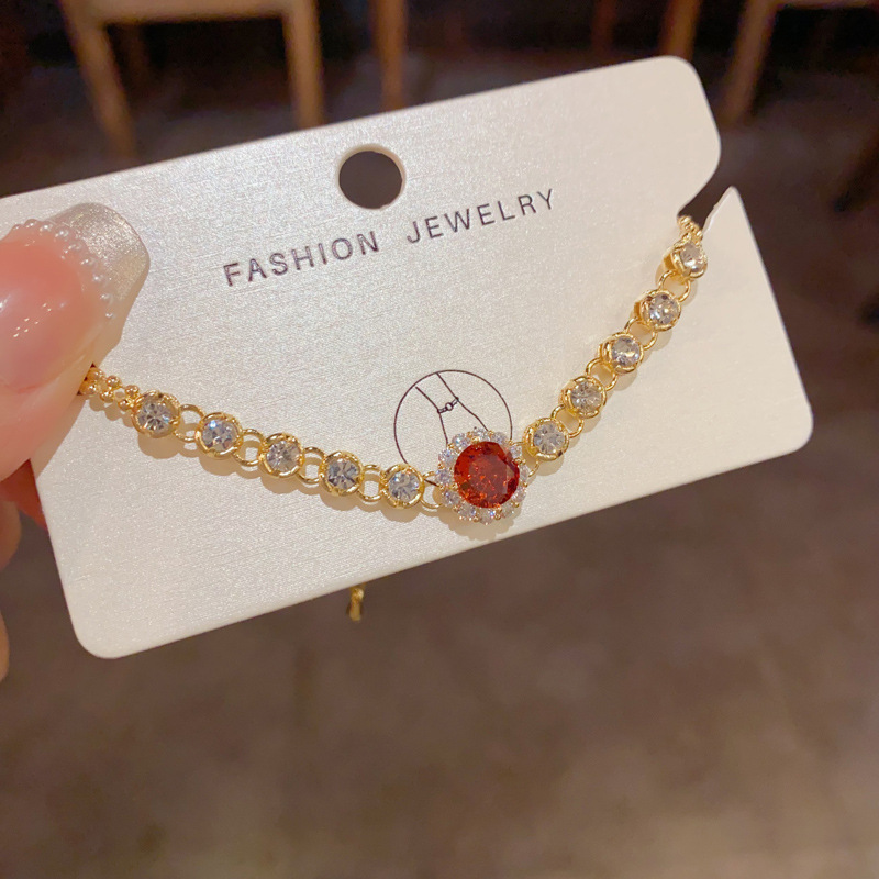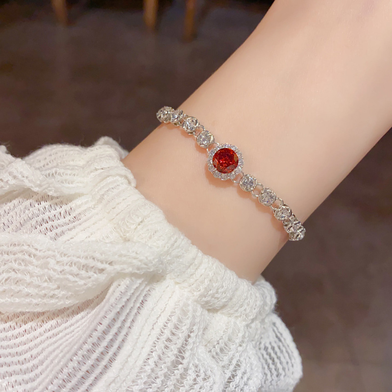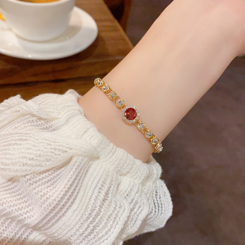 轻奢时尚百搭超闪满钻红色花朵手链精致简约设计感可调节手饰