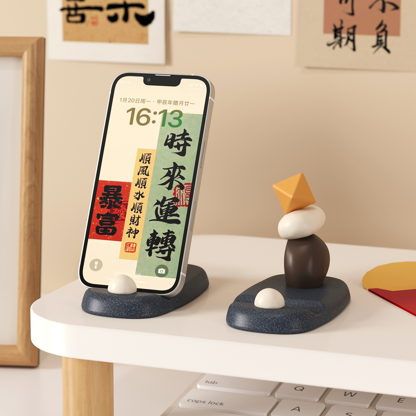 工位手机支架摆件石来运转装饰品追剧神器办公室桌面情绪稳定好物