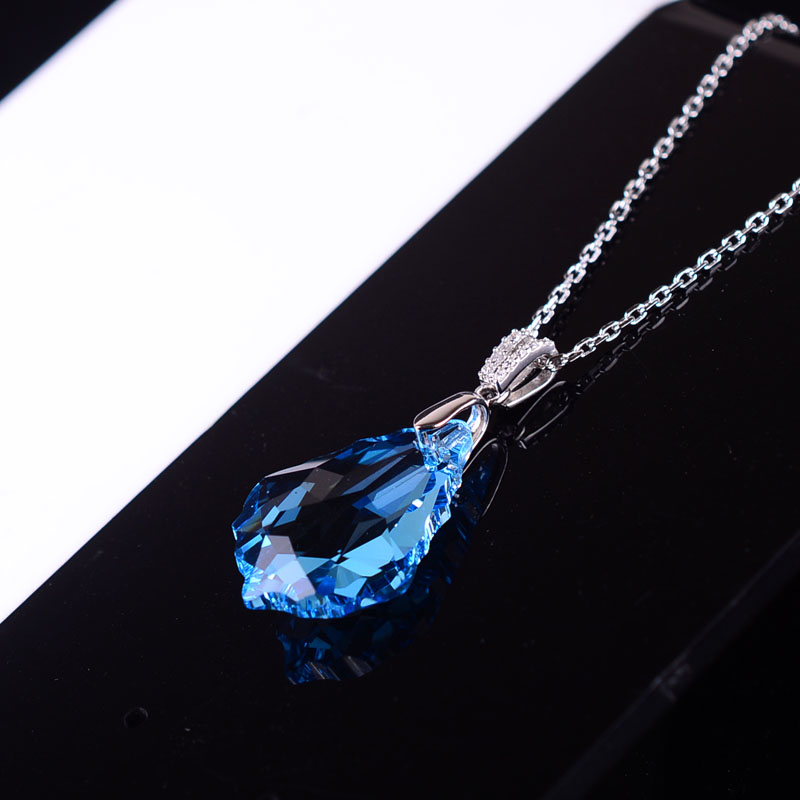 奥地利水晶项链女蓝色枫叶项链S925纯银十字链防过敏巴洛克锁骨链