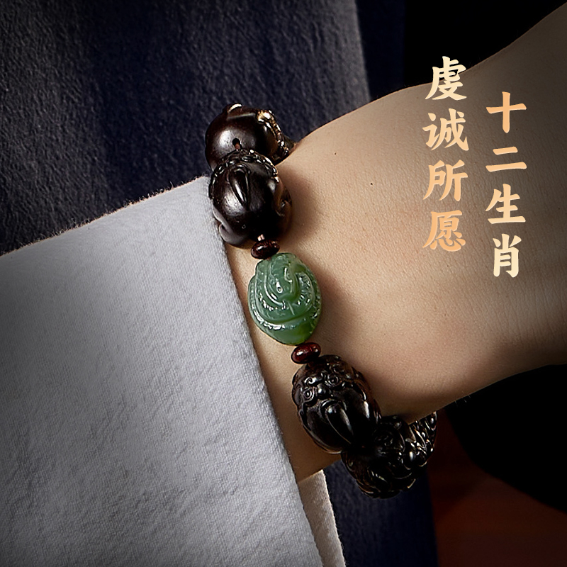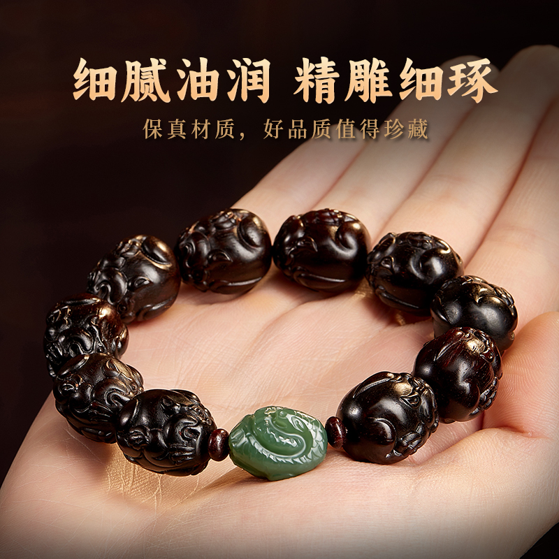 文玩手串貔貅小叶紫檀男和田玉生肖檀木质念珠佛珠手链手把件真品