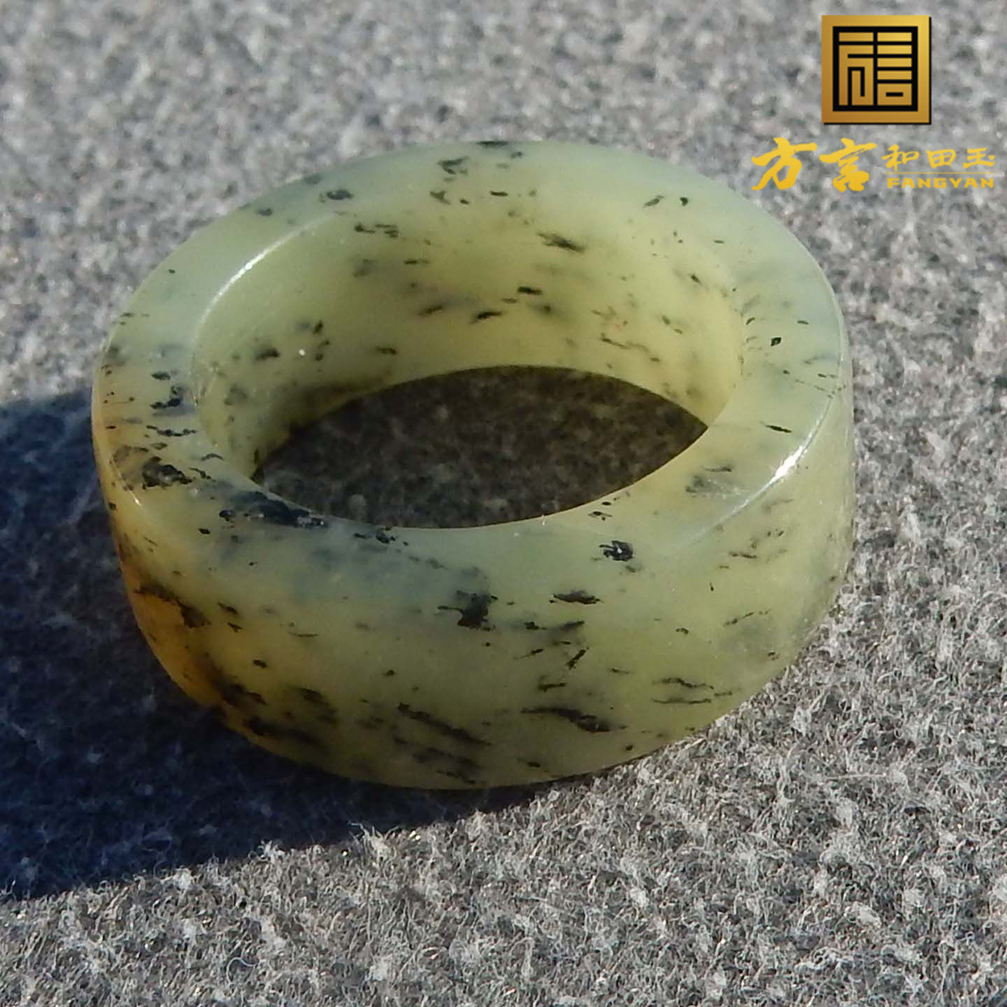 抢疯了方言和田玉新疆楼兰三色温润白玉带糖青花卡20mm戒指扳指s2