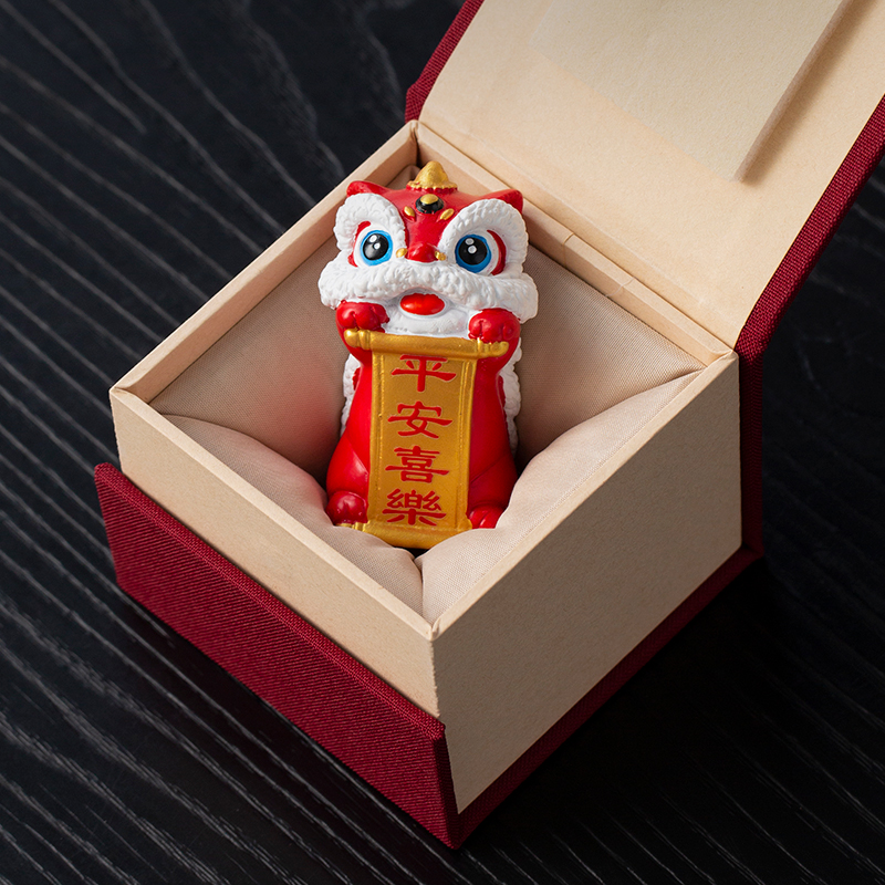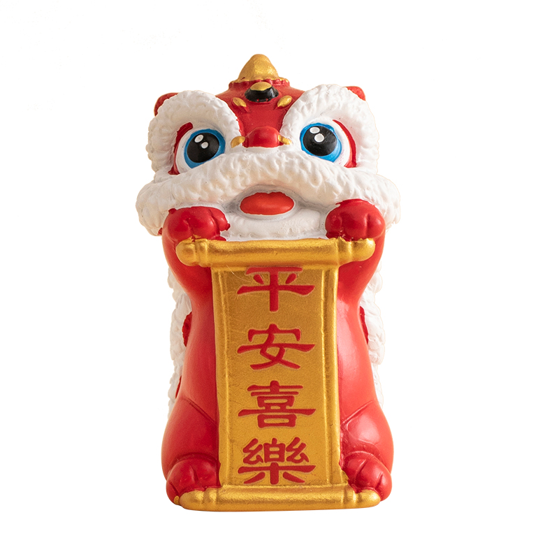 中国风平安喜乐醒狮小摆件桌面装饰品创意佛山文创石狮子生日礼物