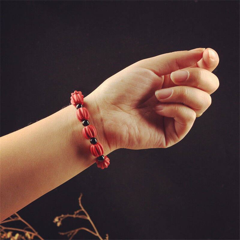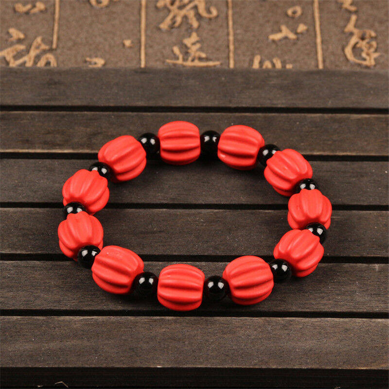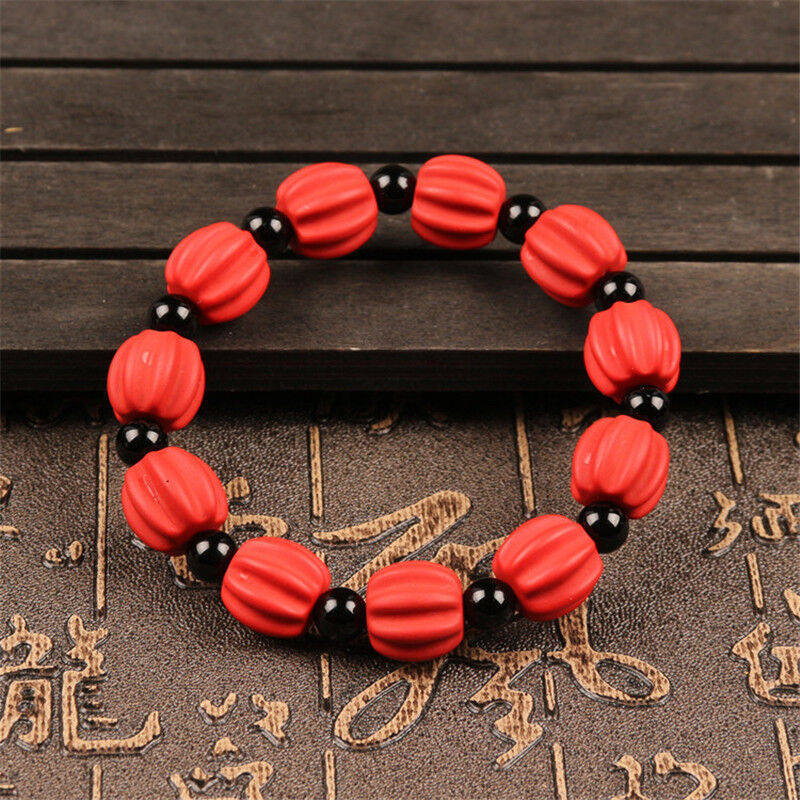 南瓜手链台湾原色朱砂帝王红南瓜佛珠手链玉链玉串手串送证书