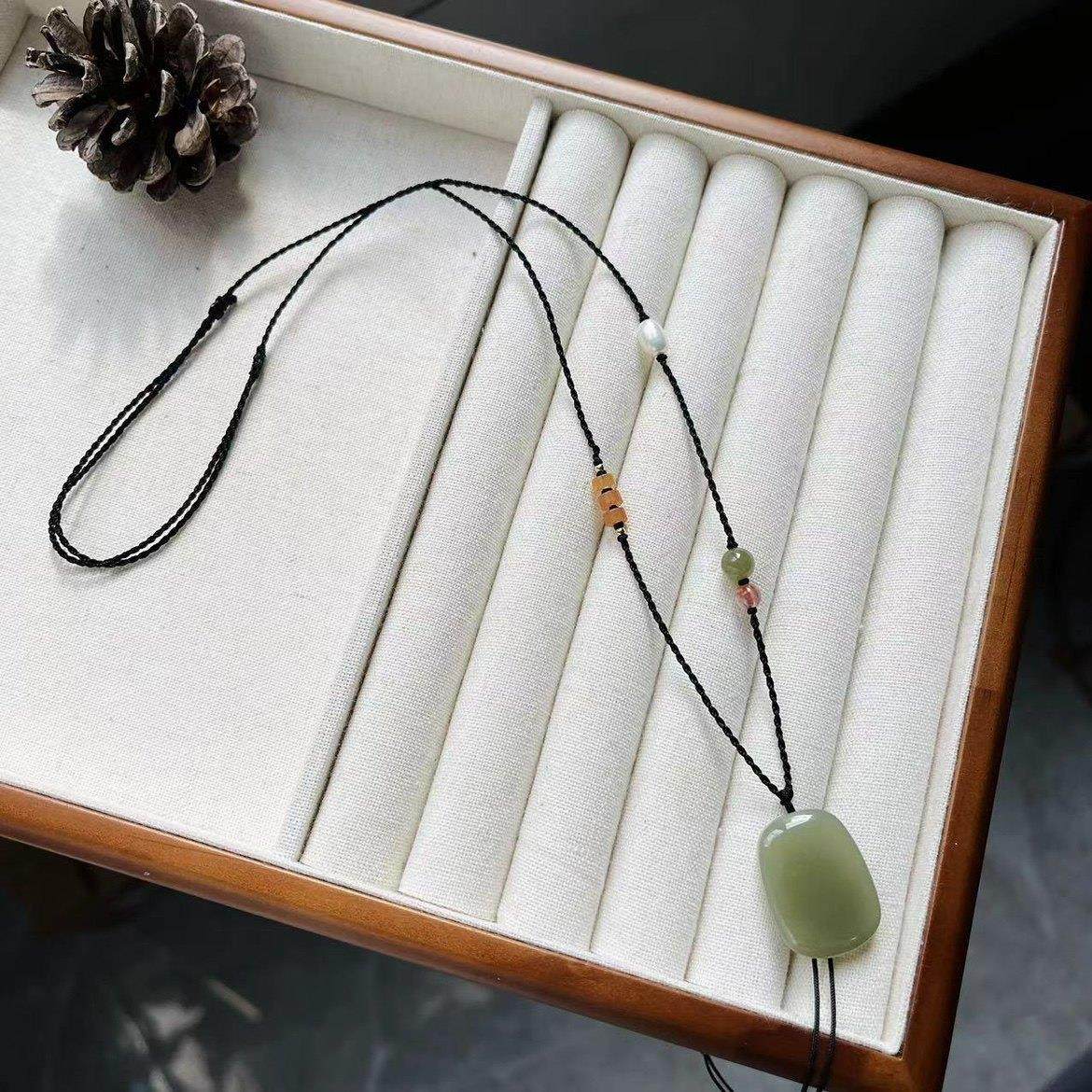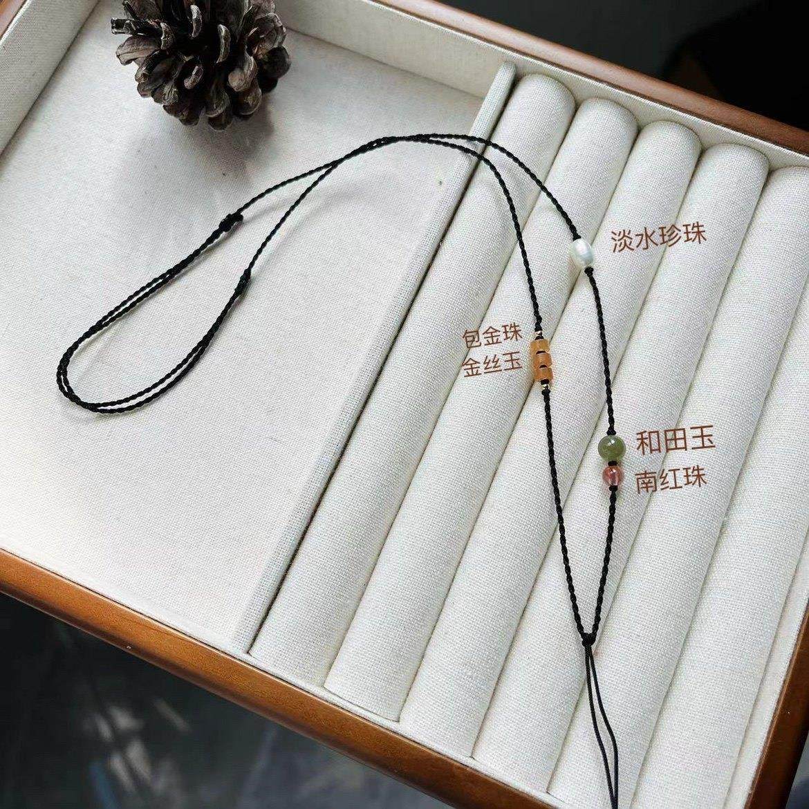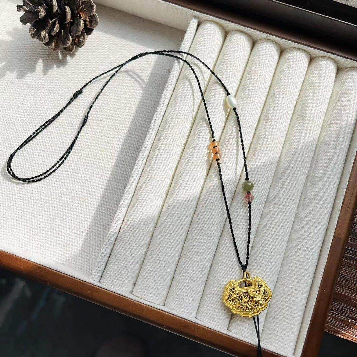 2026手工编织细玉项链挂绳翡翠和田玉金吊坠金锁黑色高档百搭可调