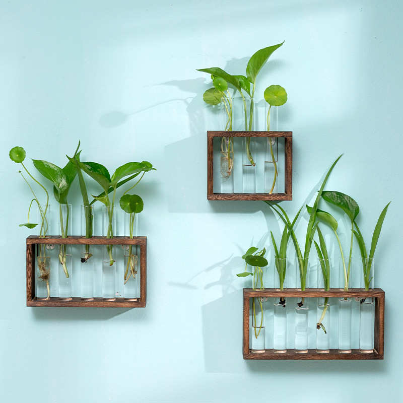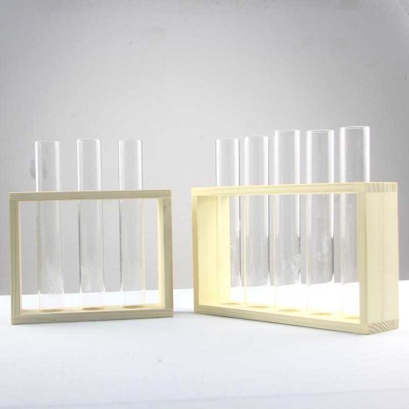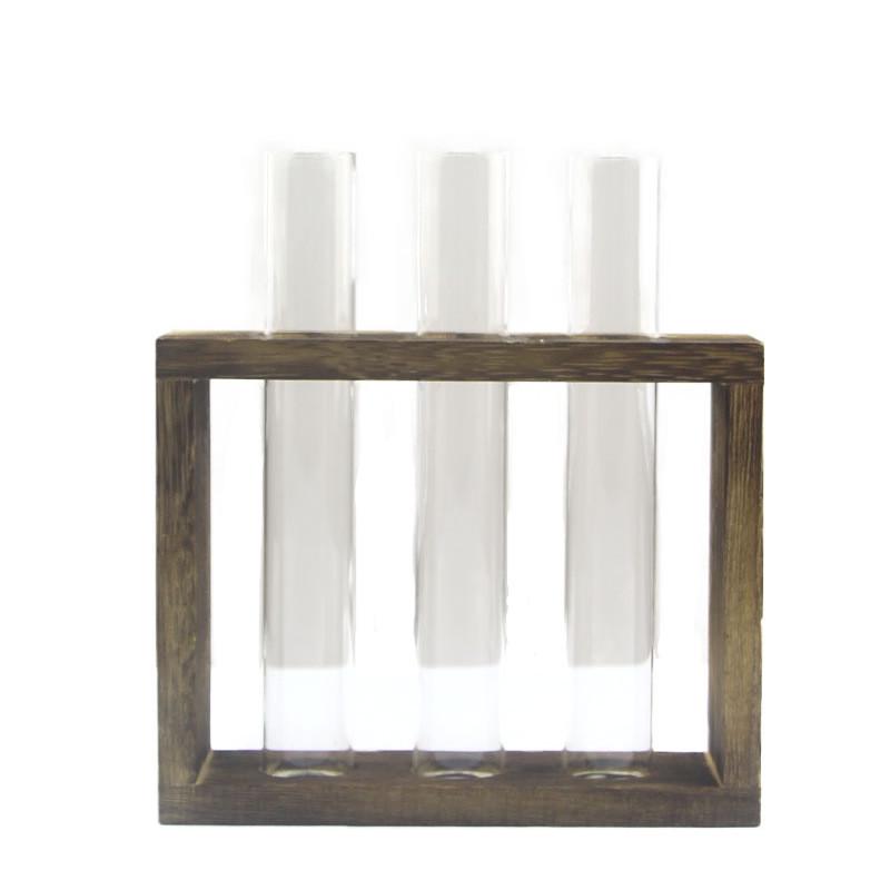 墙上花瓶摆件用品桌面容器插花装饰壁挂试管创意玻璃水培透明木架