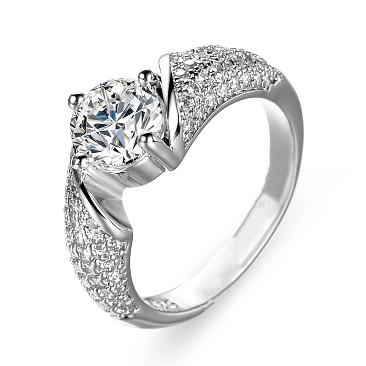 新品莫桑石钻戒925纯银戒指女18K白金AU750结婚仿真钻马蹄莲简约
