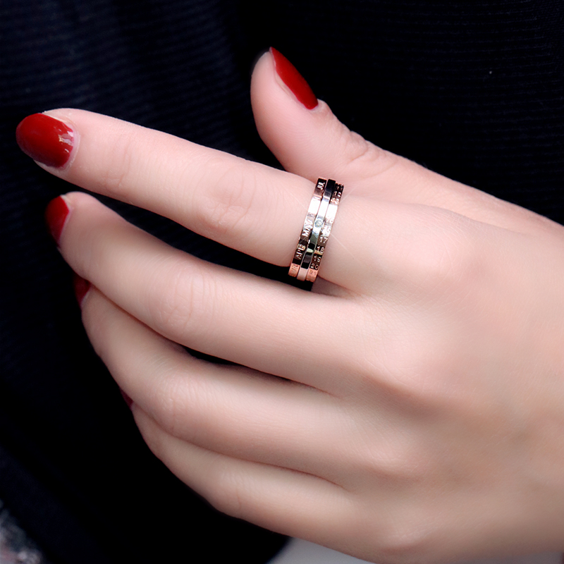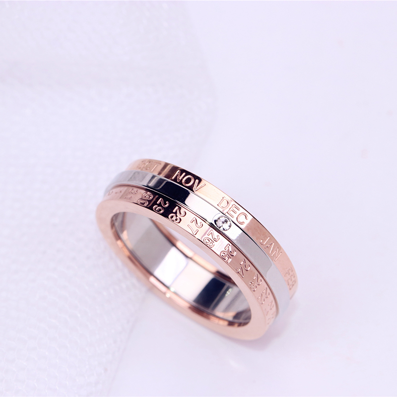 可转动日历单钻戒指个性钛钢玫瑰金时尚情侣食指戒宽男女保色质感