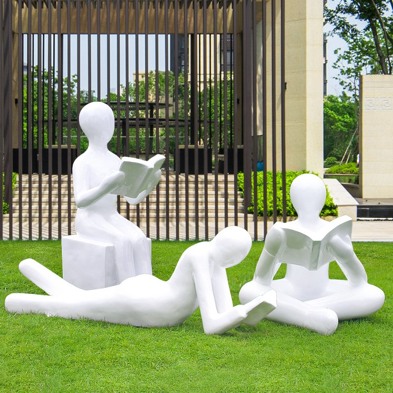 户外玻璃纤维读书人物雕塑运动小孩抽象人型学校园林景观草坪小摆