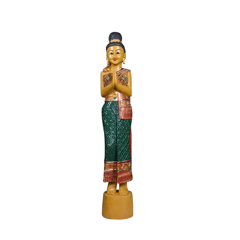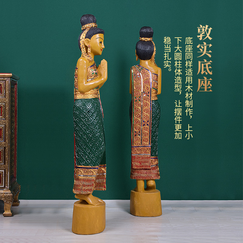 泰国迎宾落地摆件餐厅东南亚软装饰品人偶门口实木雕侍女泰式风格