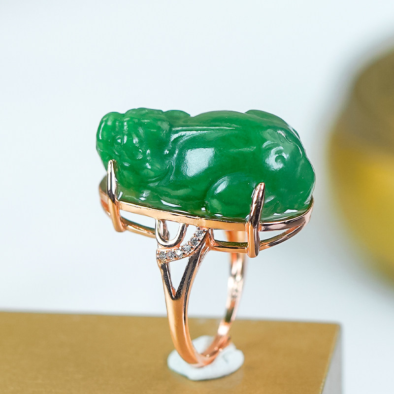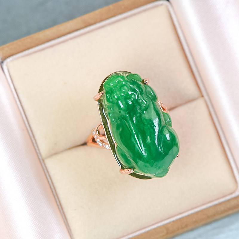 天然和田玉银镶嵌时尚百搭碧玉菠菜绿貔貅戒指