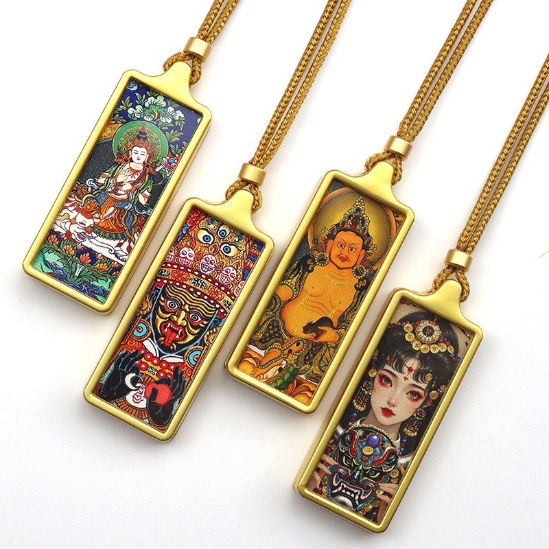 藏式随身小唐卡项链十二生肖本命佛黄财神绿度母扎基拉姆吊坠