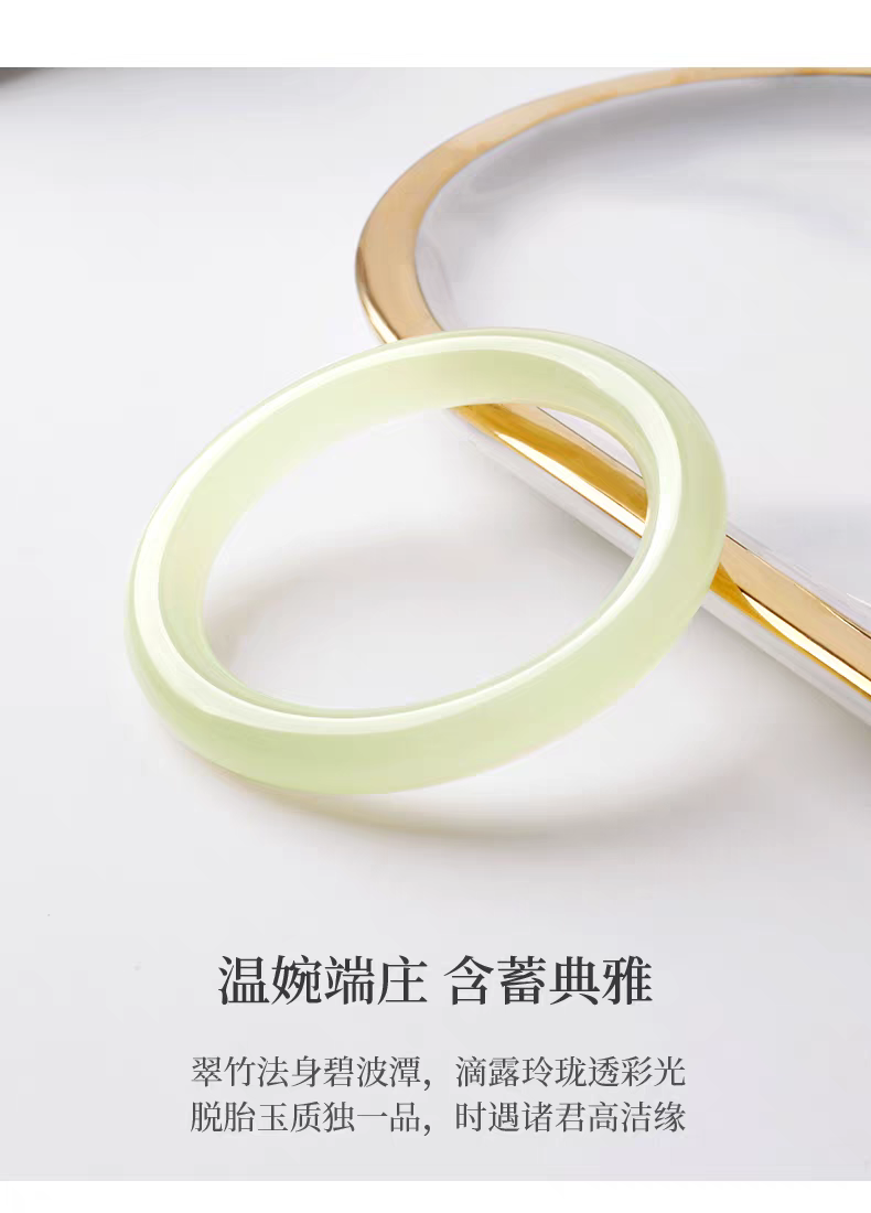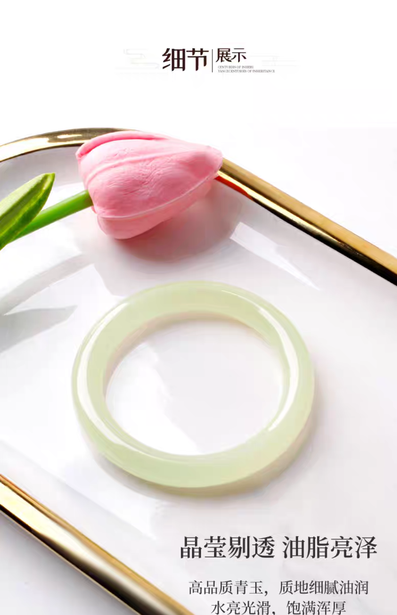 正品天然玉石圆条和田玉青白玉手镯女士晴水色青玉镯子青海黄白玉