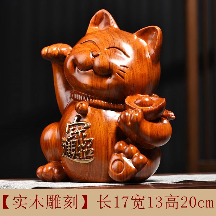 木雕摆件招财猫实木质雕刻店铺店面开业收银台摆设V红木头工艺礼