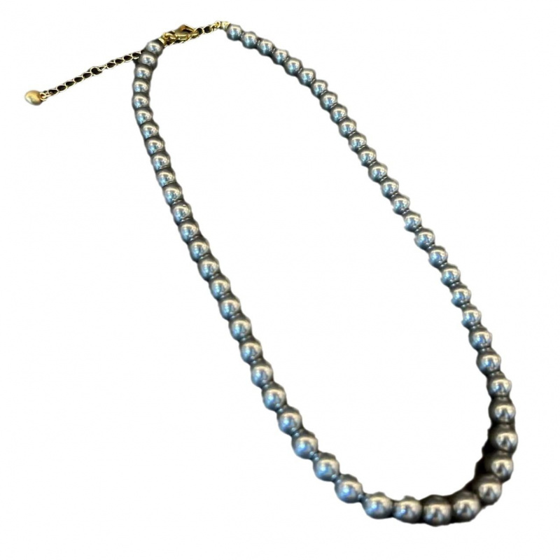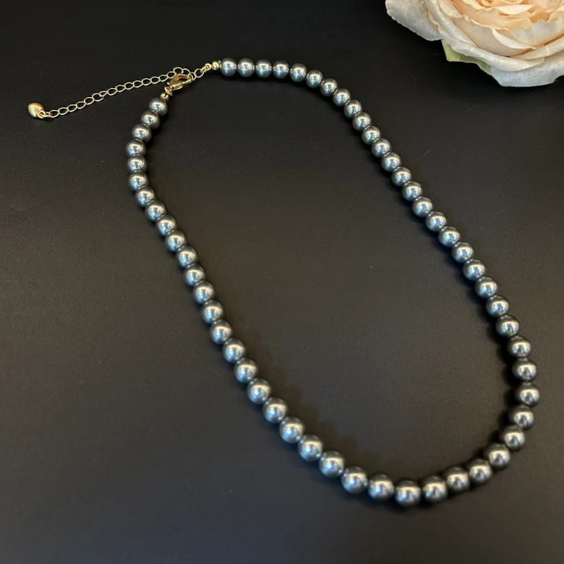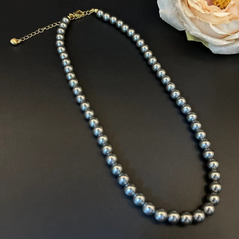 希梵尼灰色珍珠项链9-10正圆 925银扣 母亲节送妈妈礼物