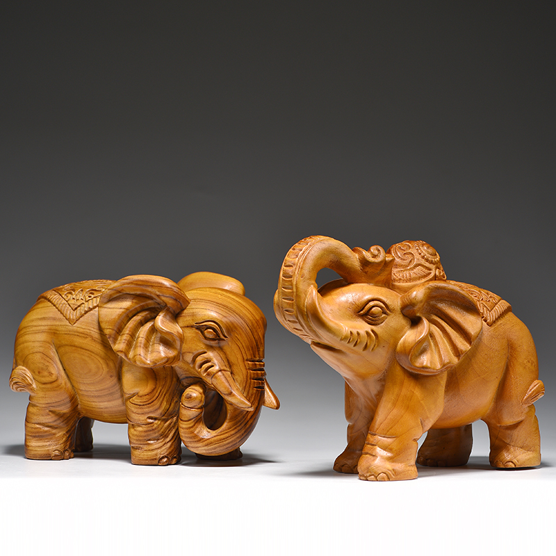 香樟木雕大象摆件实木雕刻象家居客厅如意办公室桌面装饰工艺礼品