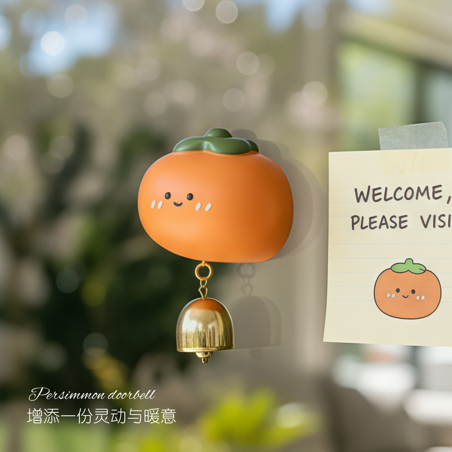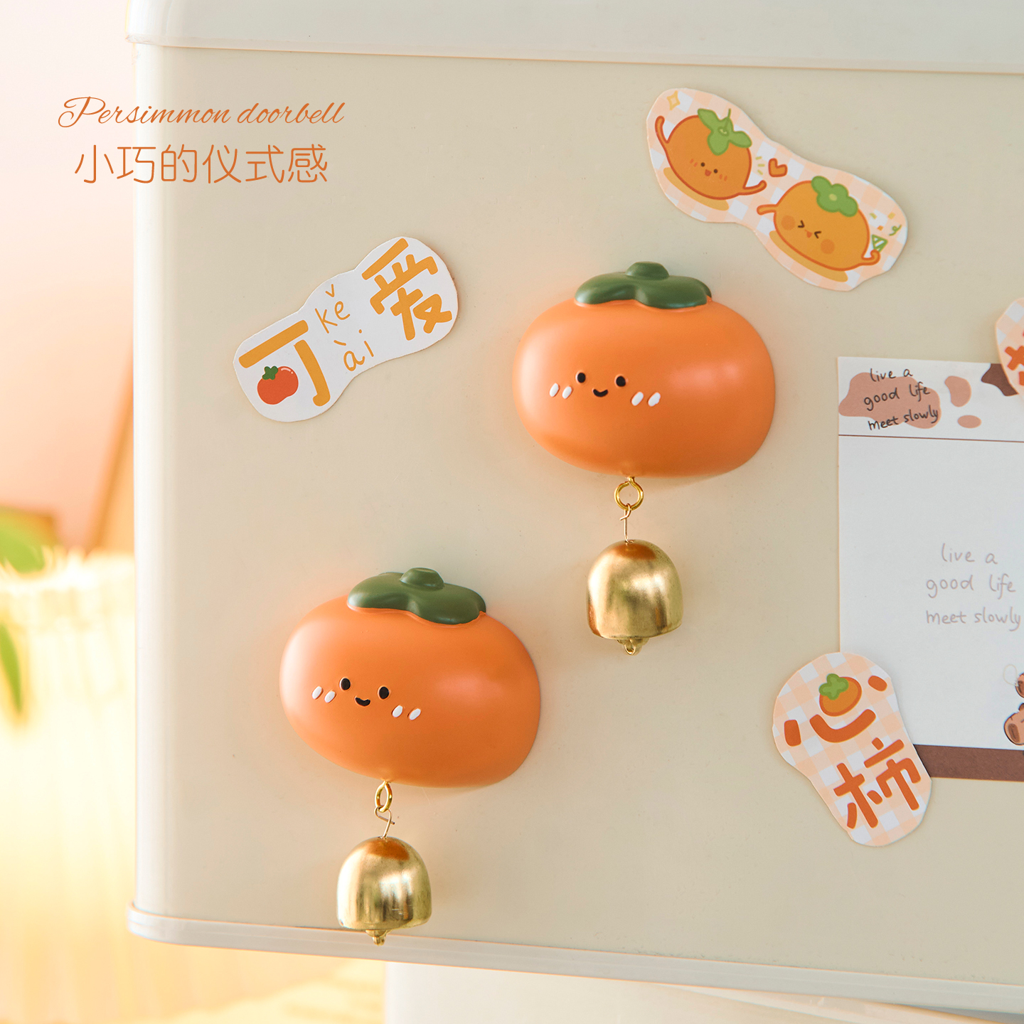 事事如意创意可爱柿子多巴胺门铃风铃磁吸冰箱磁贴开门提醒门铃铛