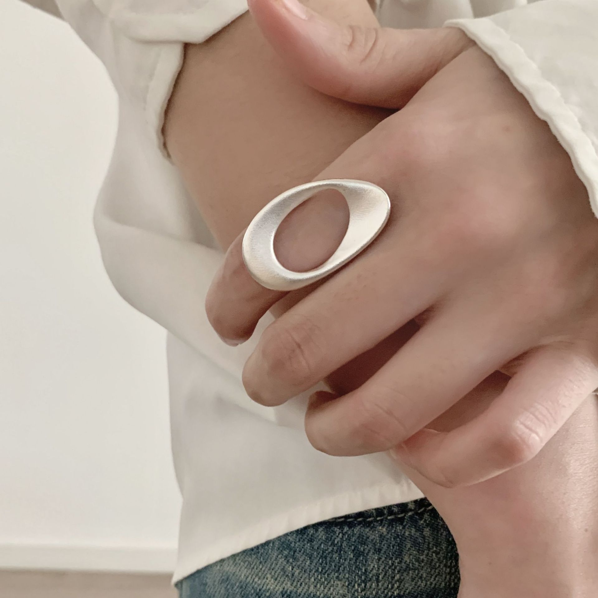 欧美风夸张镂空戒指女几何雾面哑光精致开口指环小众设计食指戒潮