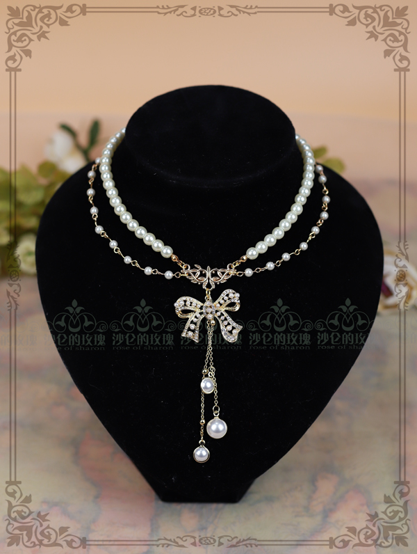 独家!*蝶影幻梦*镶珍珠蝴蝶结吊坠珍珠项链 复古宫廷CLA系Lolita