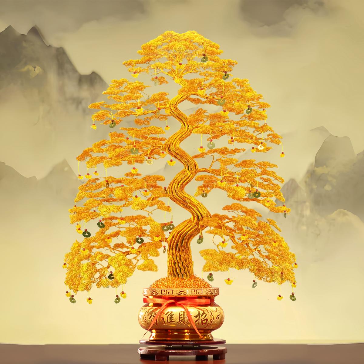 金色发财树摆件手工编织摇钱树家居客厅办公室装饰品乔迁开业送礼