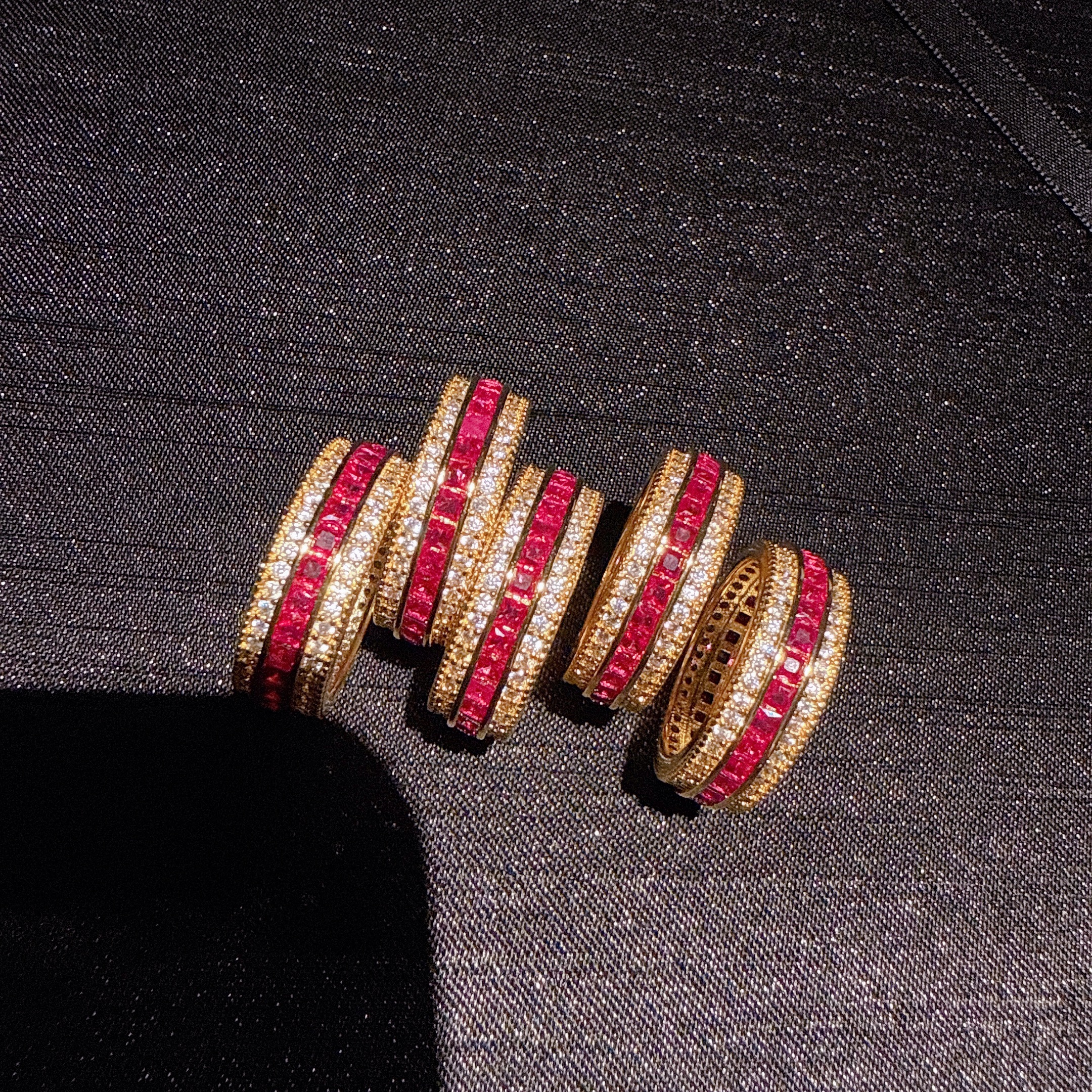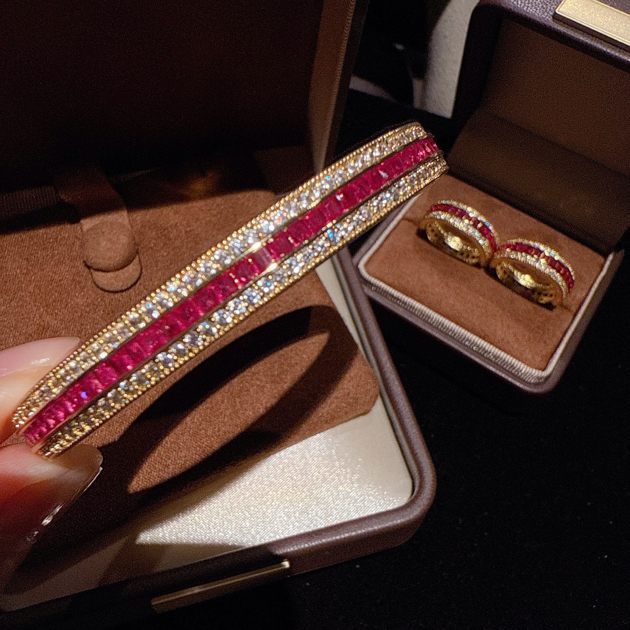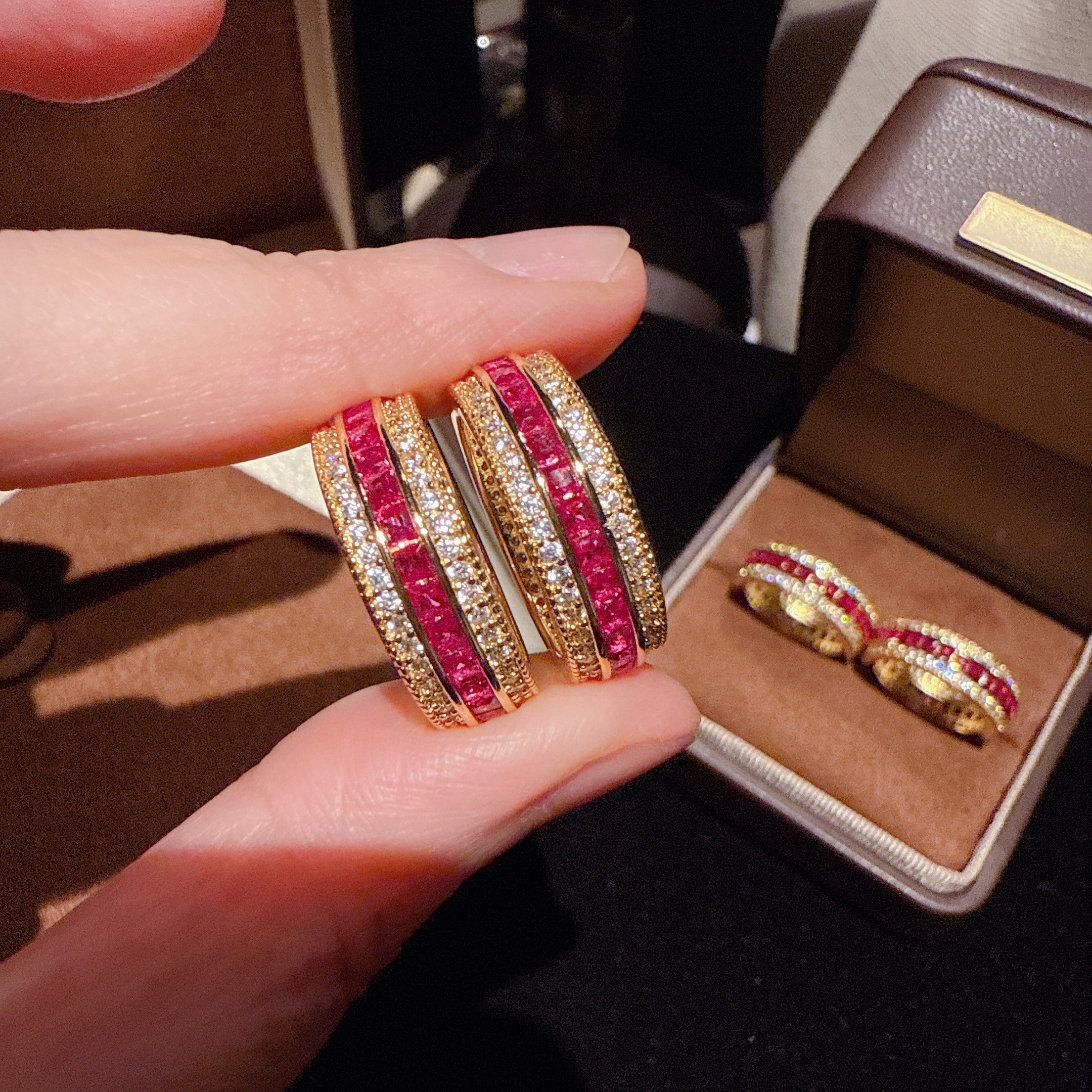 意大利复古红点钻红宝三排钻戒指Vintage红色宝石戒指新中式戒指