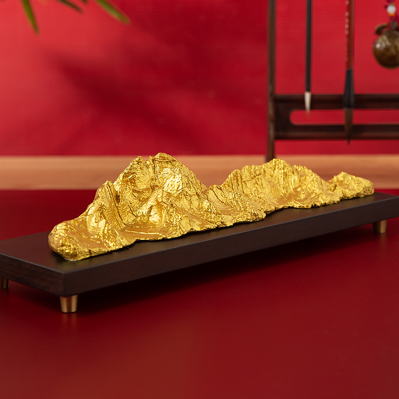 千里江山图黄铜故宫假山摆件笔架山笔搁石山客厅书房办公室装饰品