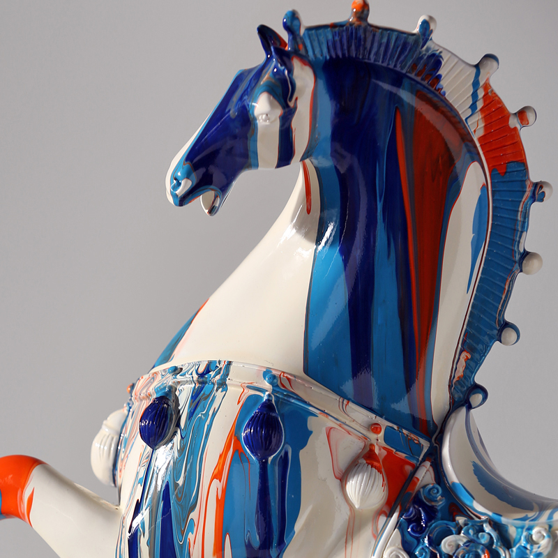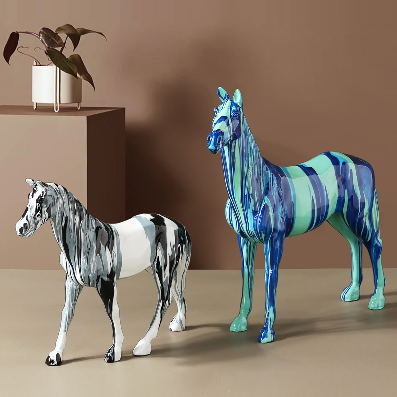 现代淋色流彩马艺术摆件客厅玄A关办公室书房桌面装饰招财创意摆