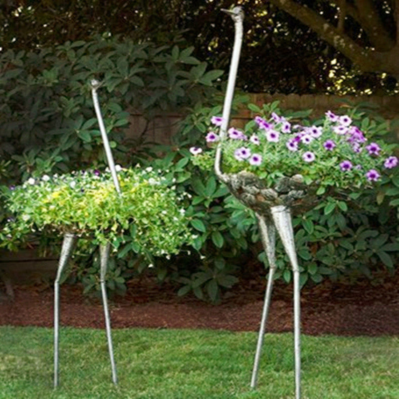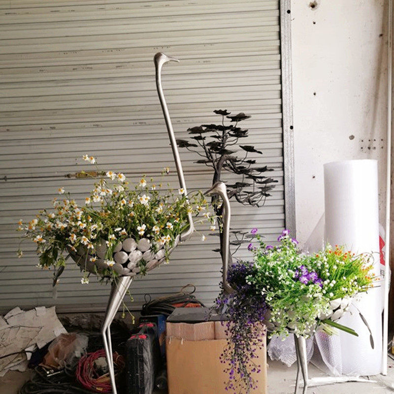不锈钢镂空鸵鸟雕塑创意个性动物落地摆件花篮抽象园林景观装饰品