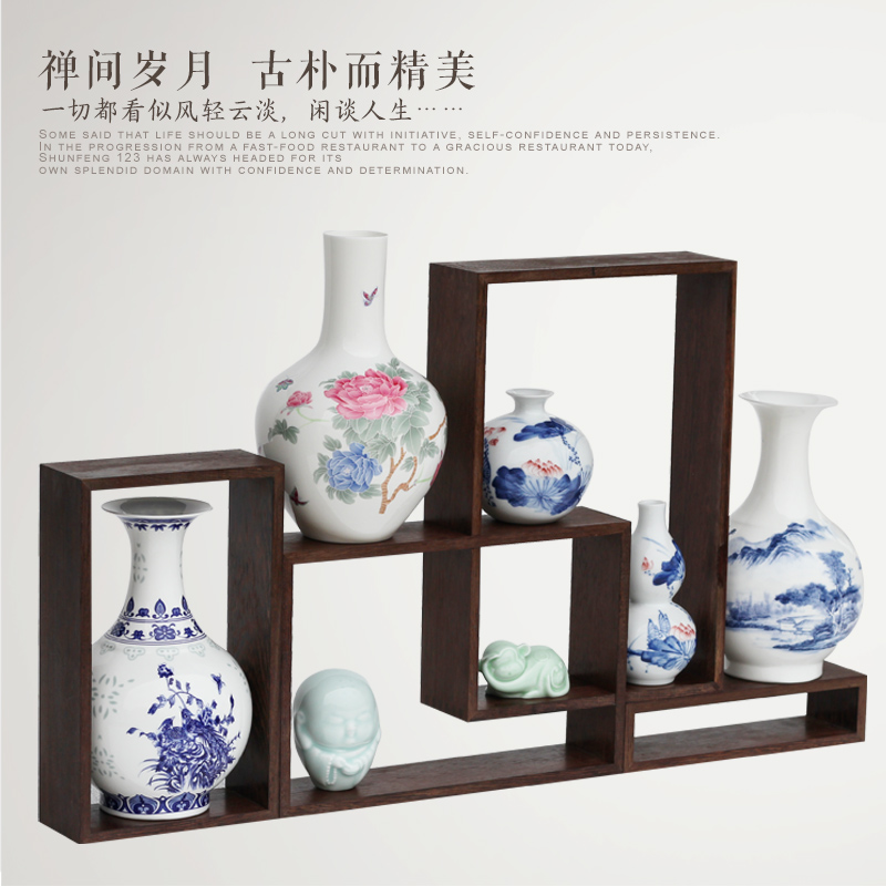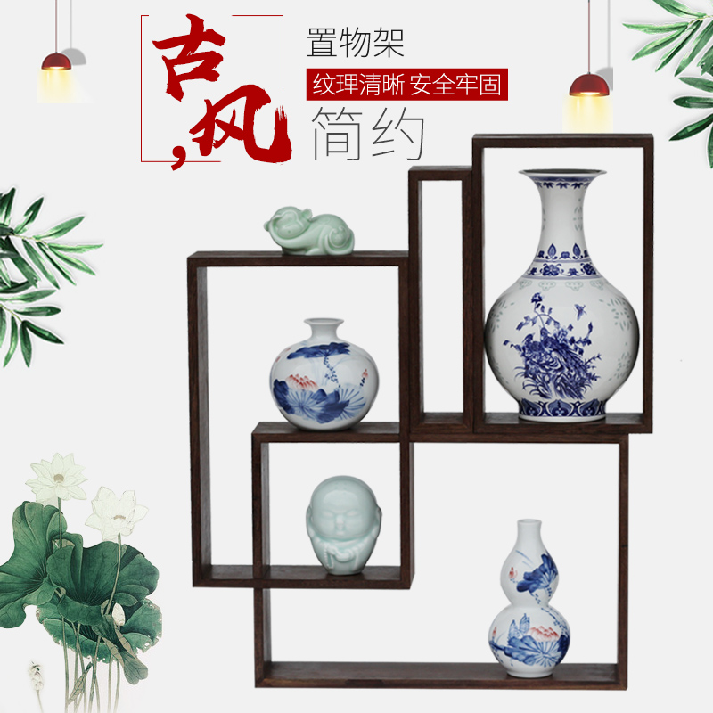 创意DIY榫卯 鸡翅木红木实木 博古架展示架多宝架花瓶紫砂茶具架