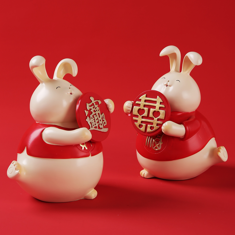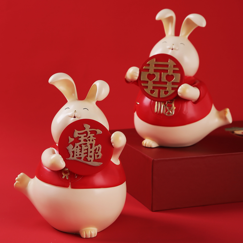 招财兔摆件前台卧室客厅r装饰品发财兔闺蜜结婚乔迁开业礼物送新