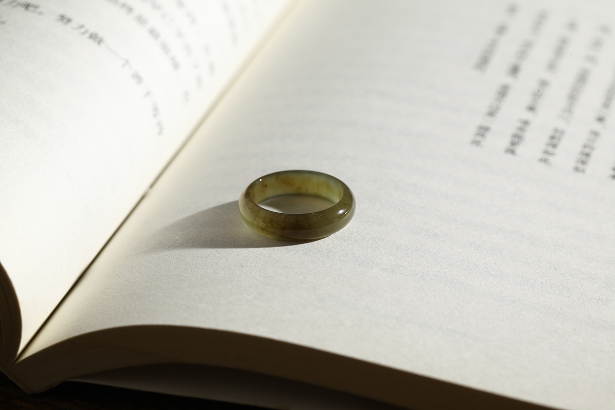 13号戒指 新疆和田玉糖玉古朴糖色唐草纹泥鳅背素圈指环 1648
