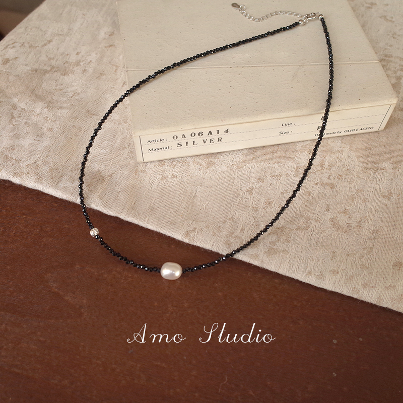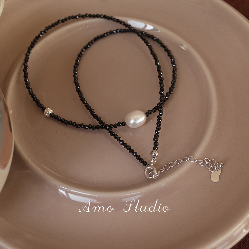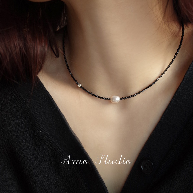 AMO冒险小姐黑尖晶串珠项链女小众设计锁骨链个性气质高级颈链