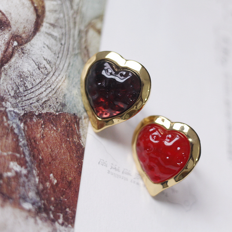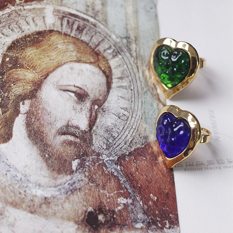 如意|法国巴黎玻璃琉璃铜镀24K厚金爱心形复古风格艺术活口戒指女