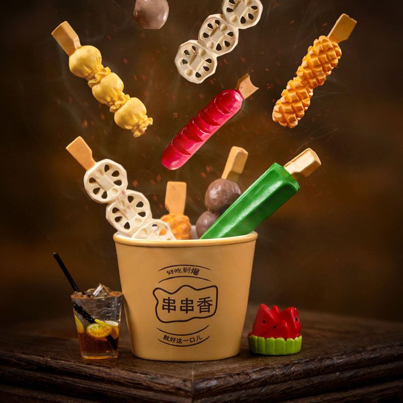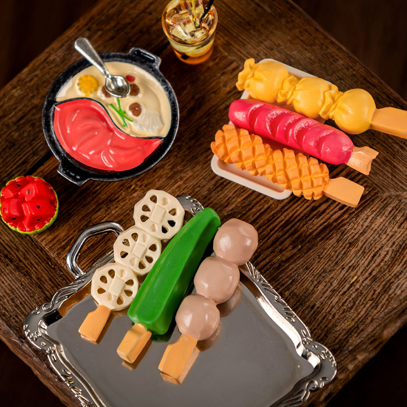 微景观创意街边美食麻辣烫串串香仿真食物桌面手工装饰品迷你摆件