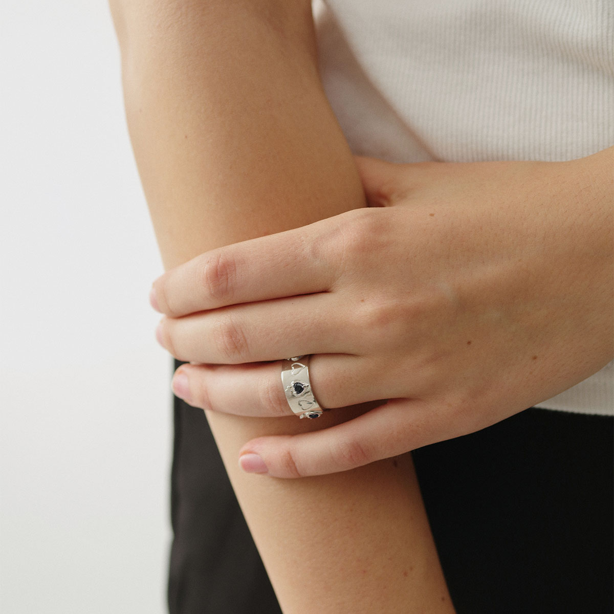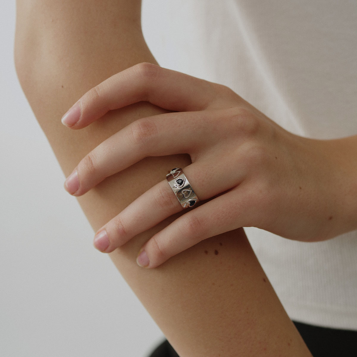 Mouhooland暮后之地黑曜之心喻言同款戒指925银白金潮酷情侣戒指