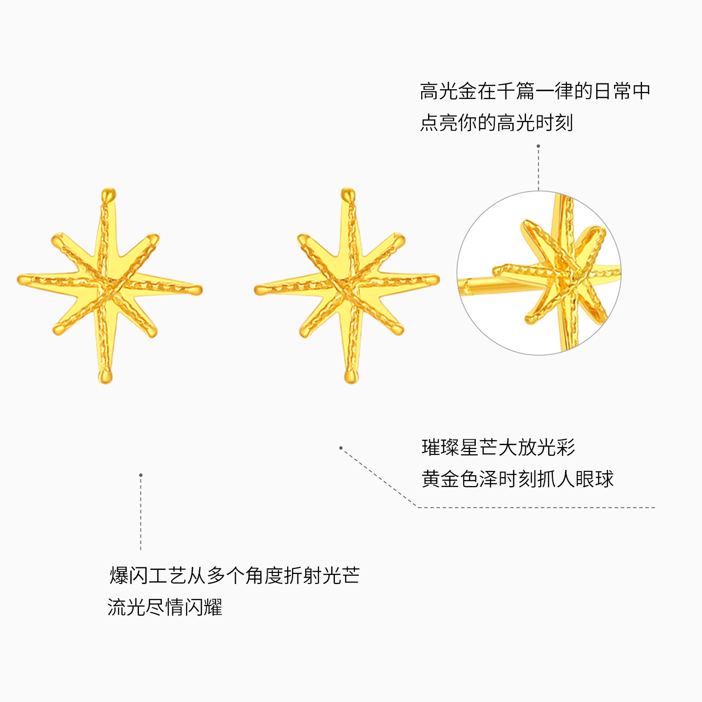 潮宏基高光金爆闪碎金星星糖黄金耳钉足金耳饰圣诞礼物女计价
